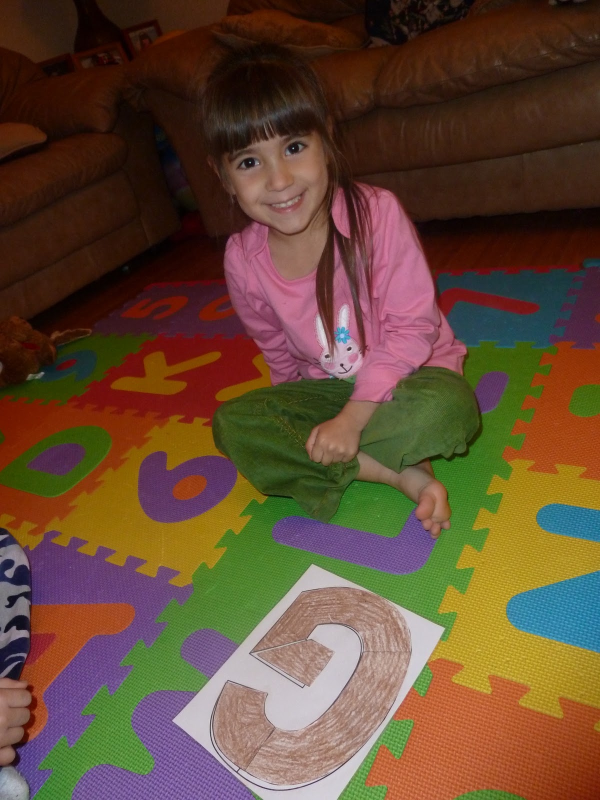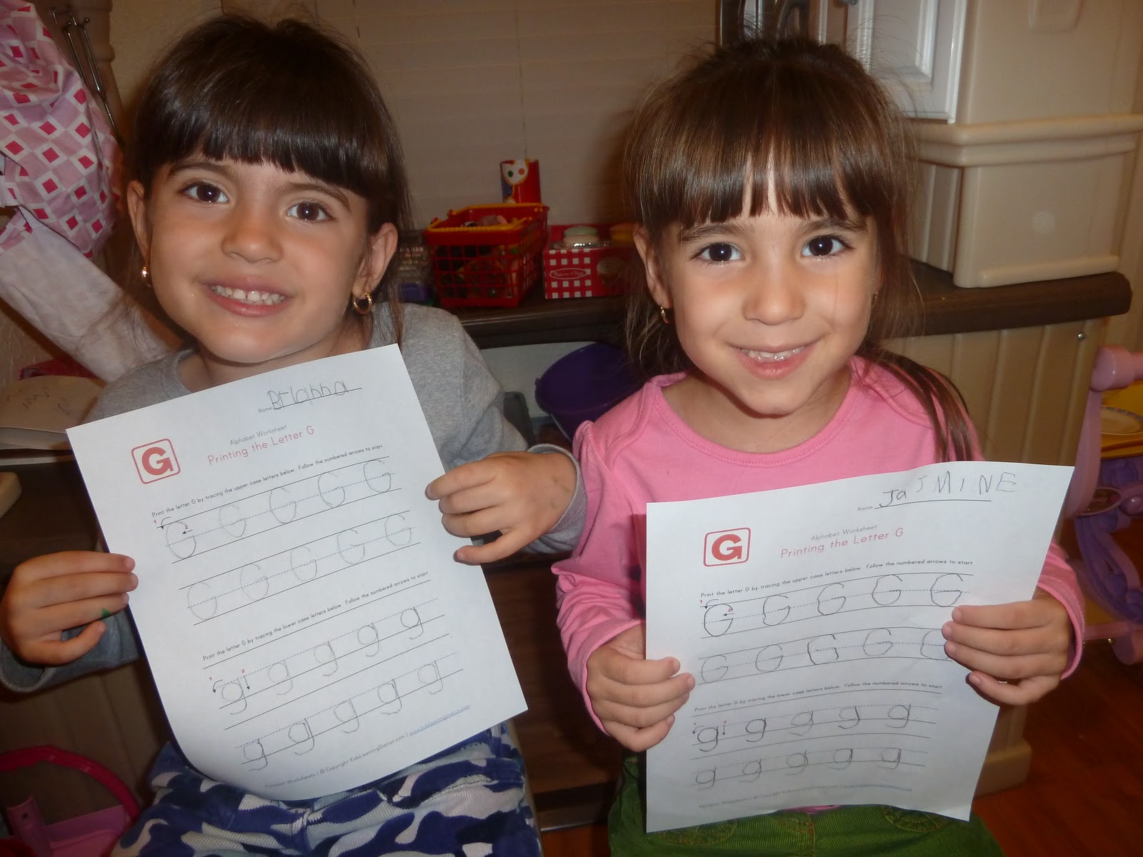 2. Letter G Puzzle - I showed them the laminated G first so they could see how it was supposed to look. Then I gave them the pieces and let them put the puzzle together. The Littlest Diva used the original to help her form the letter but The Oldest Diva did it one her own by trial and error to make it a bit more challenging for her.